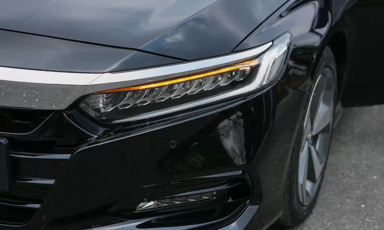 Phần đầu Honda Accord 2025 nổi bật với mặt ca-lăng “hầm hố” viền chrome bản lớn vuốt cánh chim, tích hợp cảm biến Honda SENSING. Cụm đèn LED chia khoang đặc trưng cùng đèn sương mù LED tăng vẻ hiện đại và khả năng chiếu sáng tối ưu.