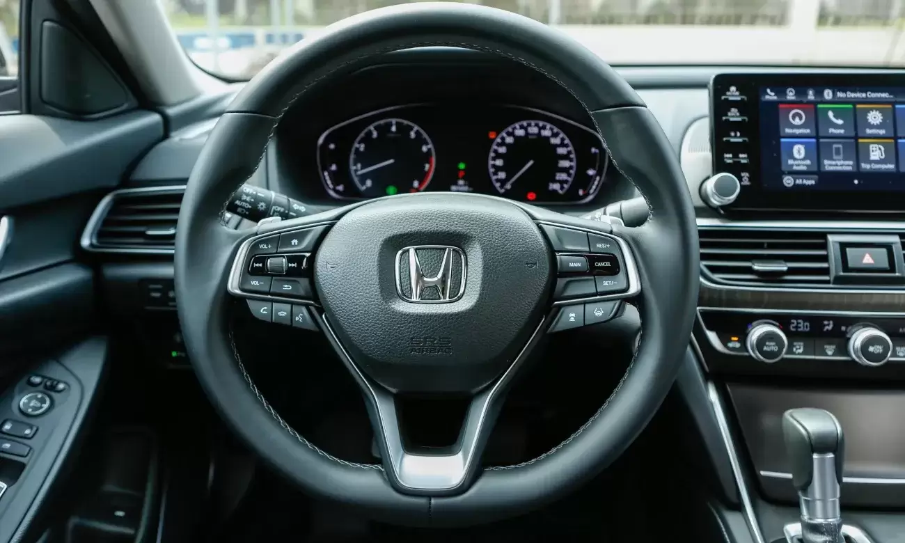 Khoang nội thất của Honda Accord 2025 là sự hòa quyện hoàn hảo giữa vẻ đẹp tinh tế và công nghệ hiện đại. Bảng táp-lô ốp vân gỗ, mạ chrome sang trọng kết hợp màn hình cảm ứng 8 inch IPS trung tâm, tích hợp Apple CarPlay, Android Auto và điều hướng thông minh.