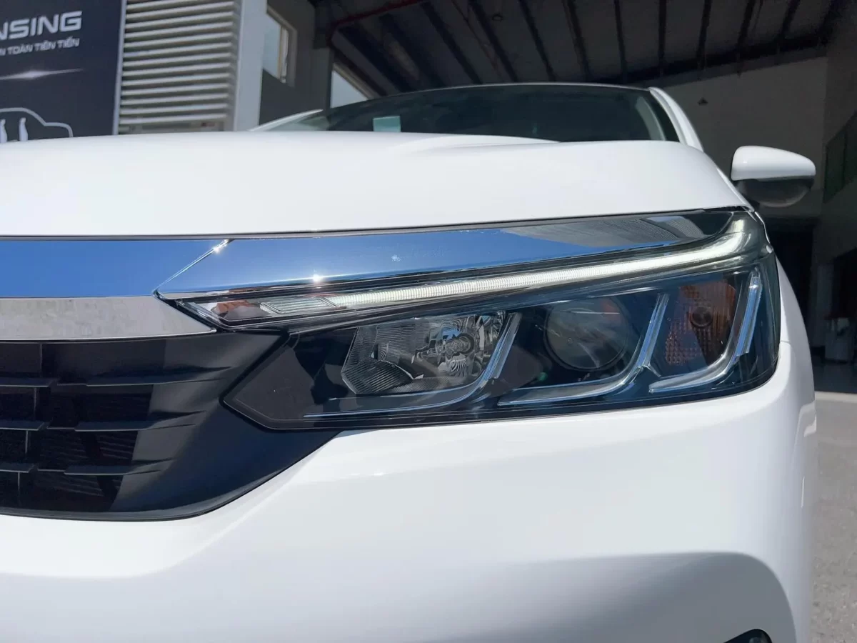 Đầu xe Honda City G 2025 mang đến vẻ ngoài hiện đại và tinh tế với lưới tản nhiệt thanh ngang mạ chrome sáng bóng, nối liền mạch với cụm đèn trước. Đèn pha sử dụng bóng halogen projector cho khả năng chiếu sáng tốt, kết hợp cùng dải đèn LED ban ngày sắc sảo tạo điểm nhấn nổi bật. Cản trước được thiết kế tối giản nhưng vẫn toát lên vẻ thể thao, hài hòa với tổng thể thiết kế của xe.