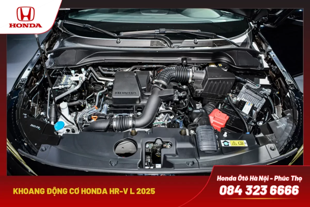 Honda HR-V L 2025 sử dụng động cơ xăng 1.5L hút khí tự nhiên, cho công suất tối đa 119 mã lực tại 6.600 vòng/phút và mô-men xoắn cực đại 145 Nm tại 4.300 vòng/phút. Hộp số tự động vô cấp CVT giúp chuyển số mượt mà, tối ưu khả năng tiết kiệm nhiên liệu trong cả đô thị và đường trường.