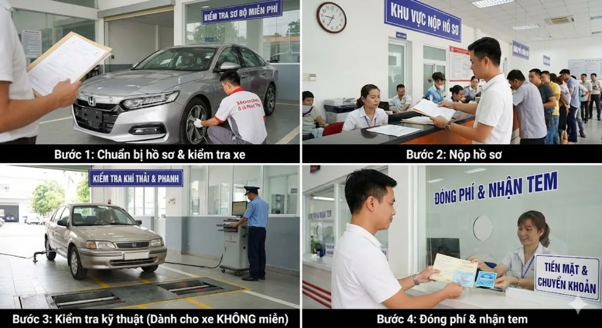 Bước 3: Kiểm tra kỹ thuật (Chỉ dành cho xe KHÔNG được miễn)