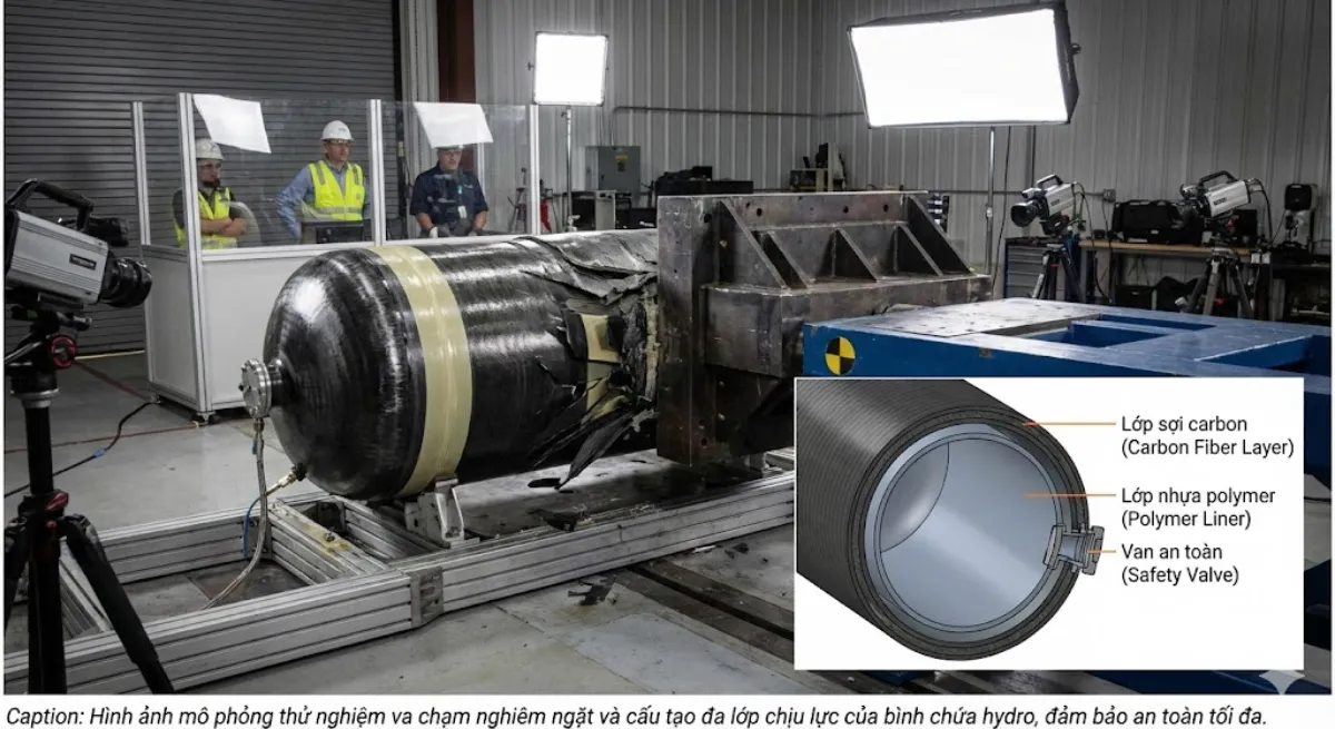 Nhiều người nghe đến khí nén thường lo sợ cháy nổ. Tuy nhiên, hệ thống FCEV được thiết kế với các nguyên tắc an toàn đa lớp, từ vật liệu bình chứa đến cảm biến thông minh.