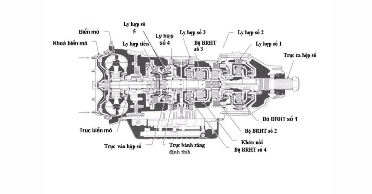 Bạn không cần học cơ khí sâu. Chỉ cần hiểu AT thường dùng biến mô + các bộ bánh răng hành tinh + hệ thống điều khiển thủy lực/điện tử để chuyển số êm ái tự động.