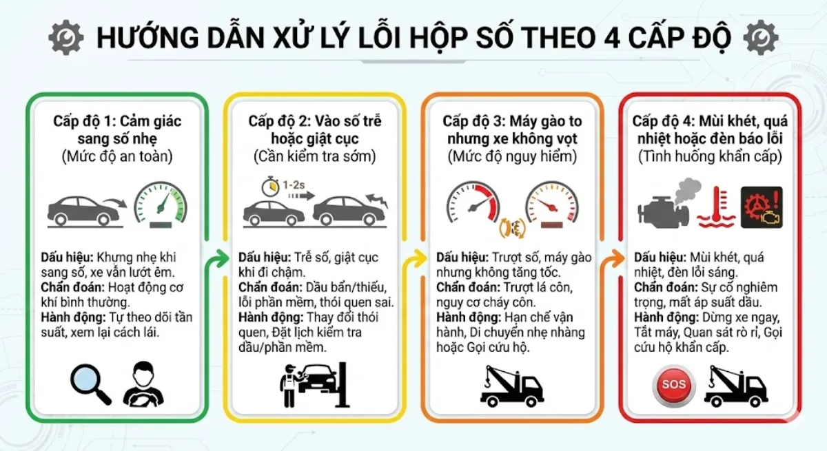 Hướng dẫn xử lý lỗi hộp số theo 4 cấp độ